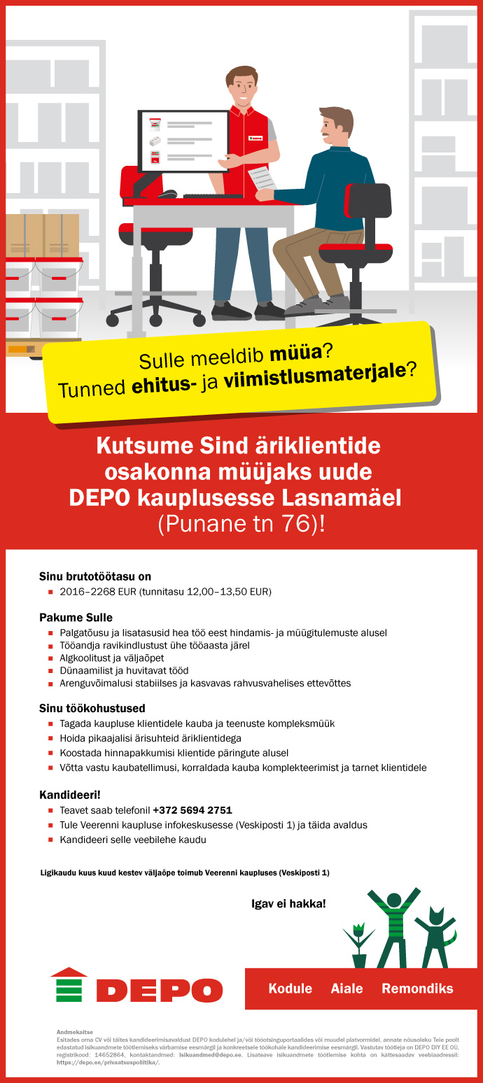 Palun sisesta siia oma küsimus. Küsimus ilmub tööpakkumisel nähtavale kohe, kui tööpakkuja on sellele vastanud. Sinu e-maili aadress jääb seejuures tööpakkumise vaatajatele varjatuks.