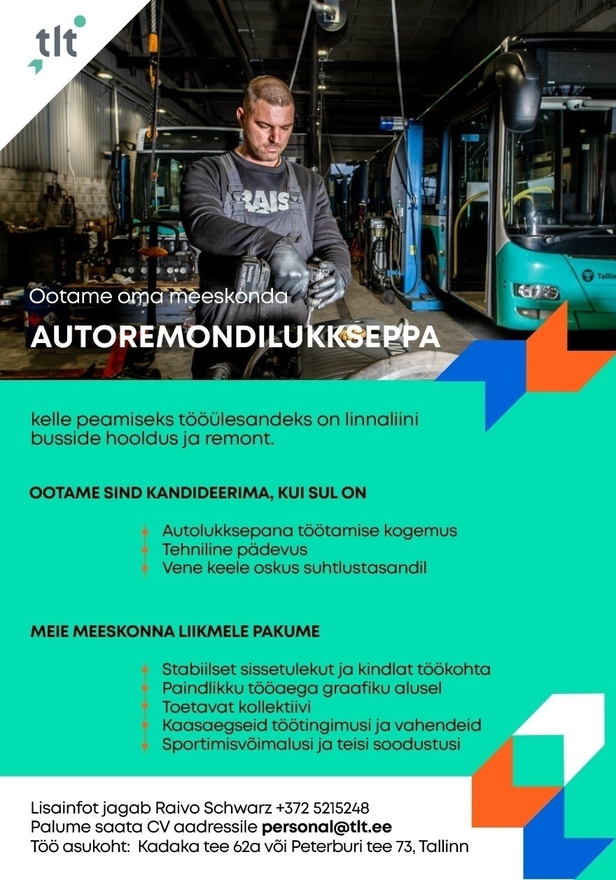 EST: Sinu peamiseks tööülesandeks on linnaliini busside hooldus ja remont.