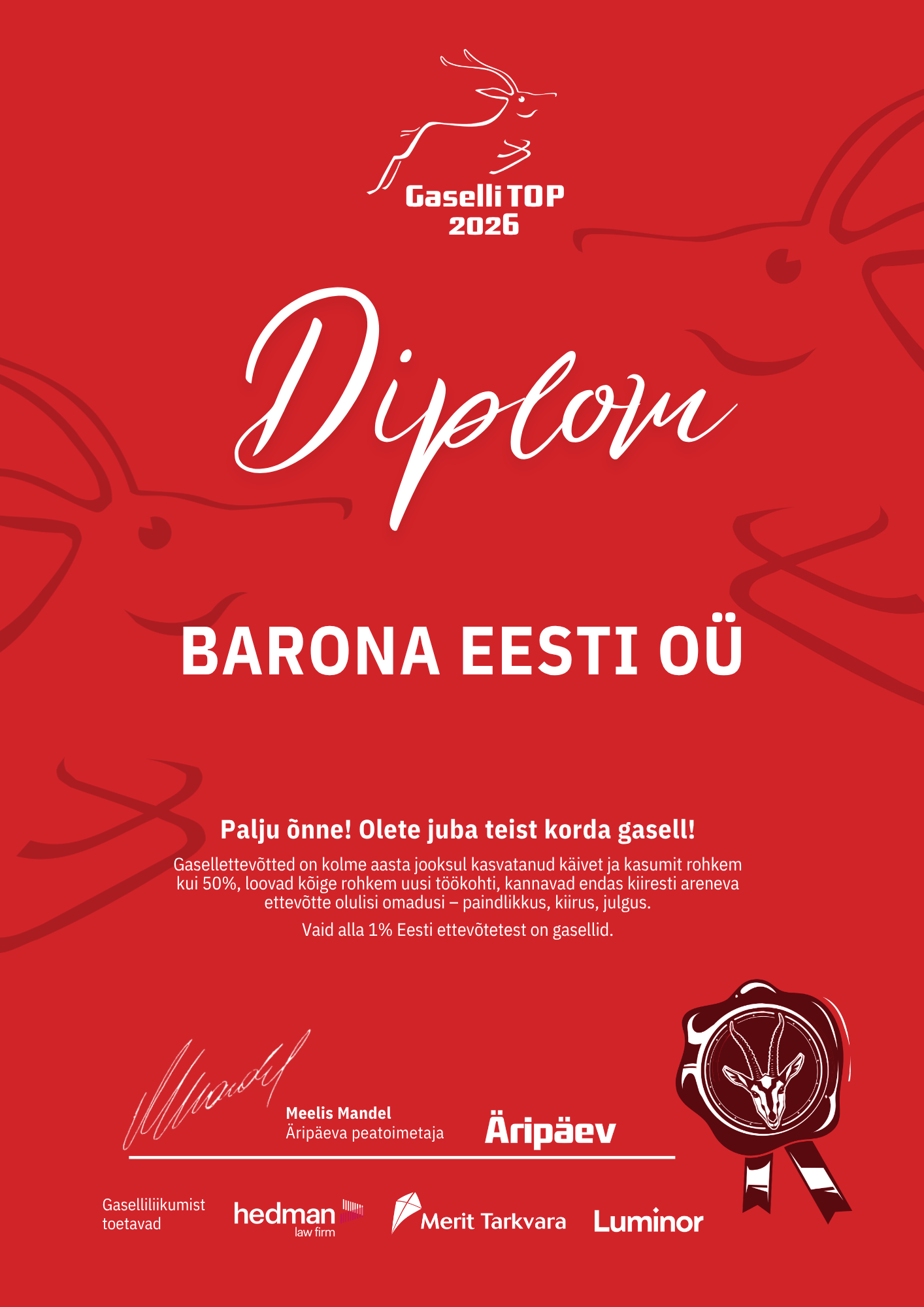Barona Eesti OÜ on CVKeskus.ee poolt verifitseeritud Kotka 26, Tallinn, Harjumaa