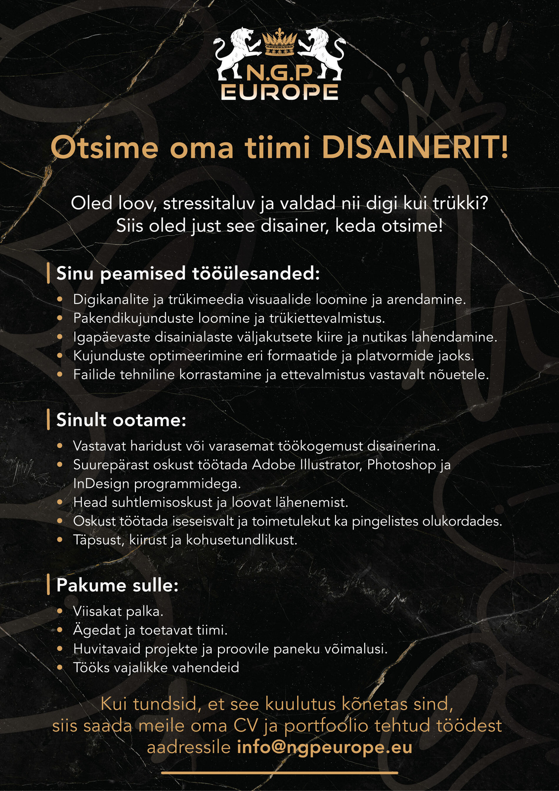 • Suurepärast oskust töötada Adobe Illustrator, Photoshop ja