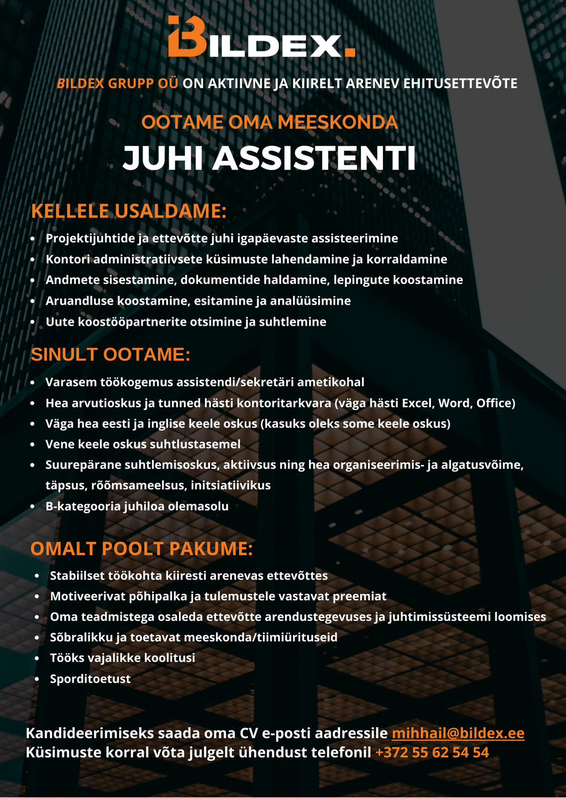-Hea arvutioskus ja tunned hästi kontoritarkvara (väga hästi Excel, Word, Office)