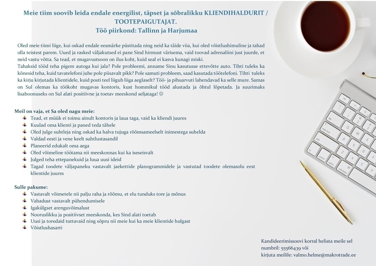 - Tagad toodete väljapaneku vastavalt jaekettide planogrammidele ja vastutad toodete olemasolu eest klientide juures
