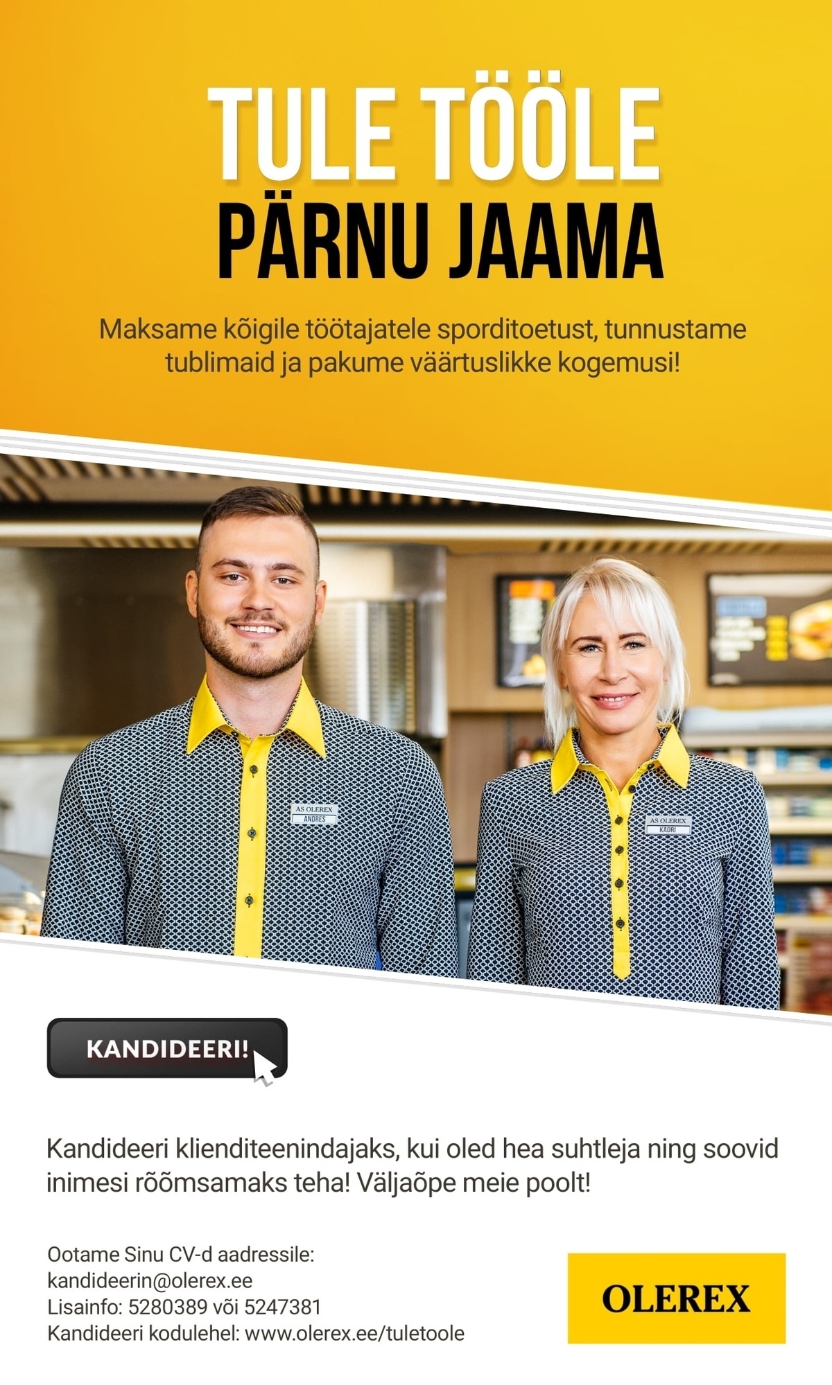 Otsime Pärnu Olerexi teenindusjaamadesse töötajaid, kelle töö eesmärgiks on meie klientidele meeldiva ja kvaliteetse teeninduskogemuse pakkumine.