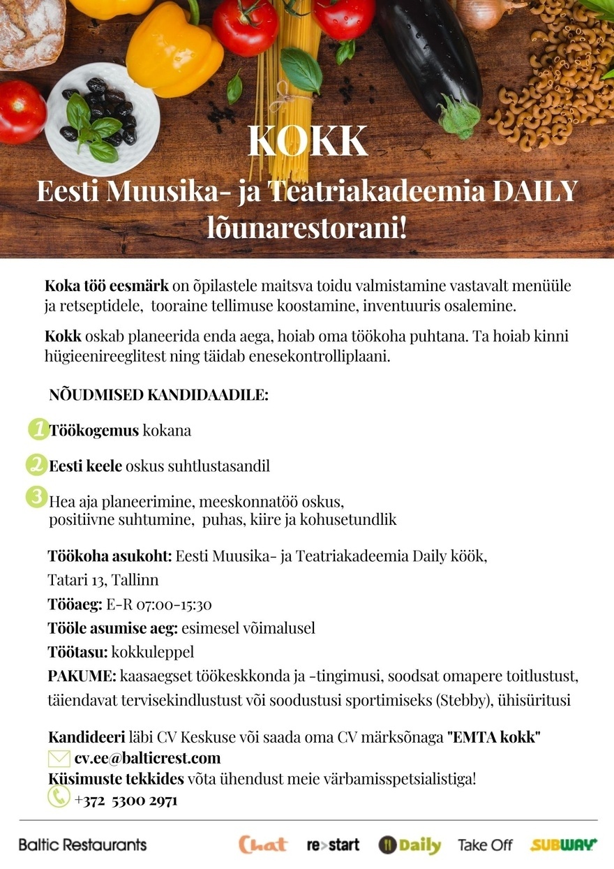 Eesti Muusika- ja Teatriakadeemia Daily köök,
