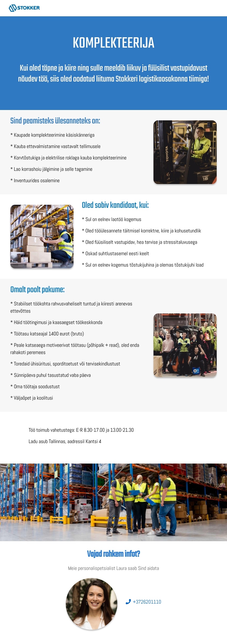 Töö toimub vahetustega E-R 8.30-17.00 ja 13.00-21.30