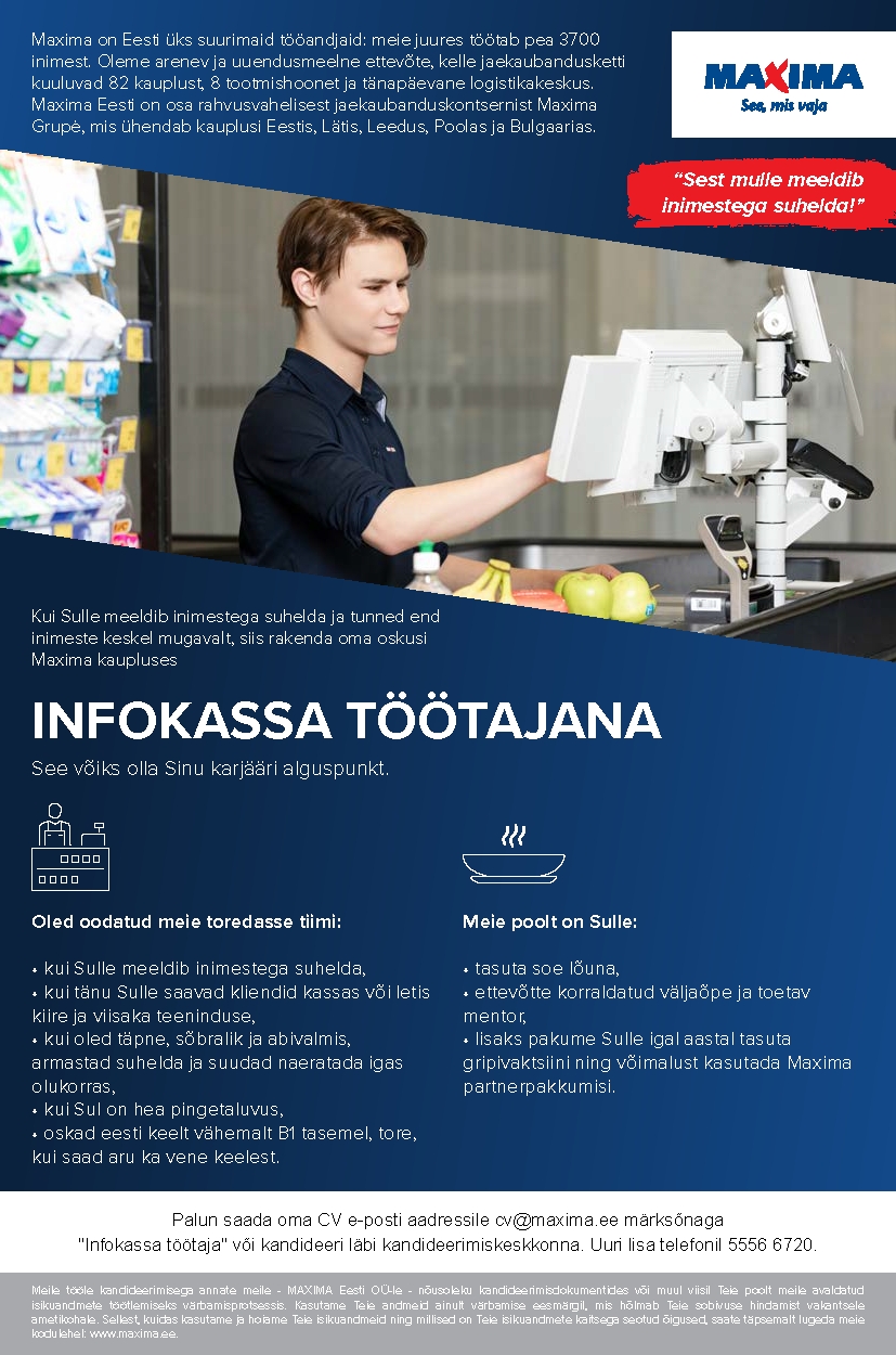 • oskad eesti keelt vähemalt B1 tasemel, tore,