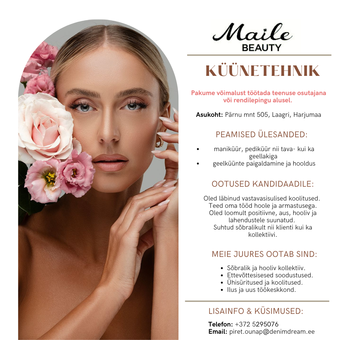 - Sul on omandatud vähemalt keskharidus ja küünetehniku kutse