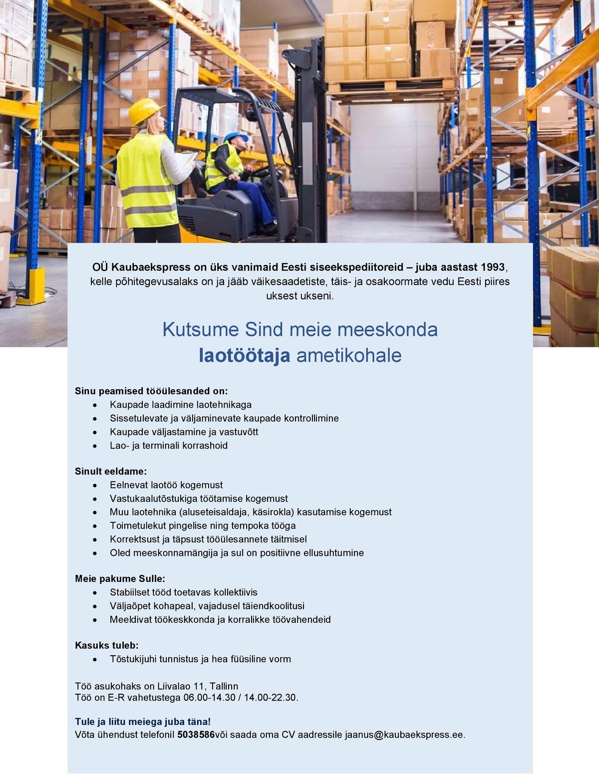 - Tõstukijuhi tunnistus ja hea füüsiline vorm