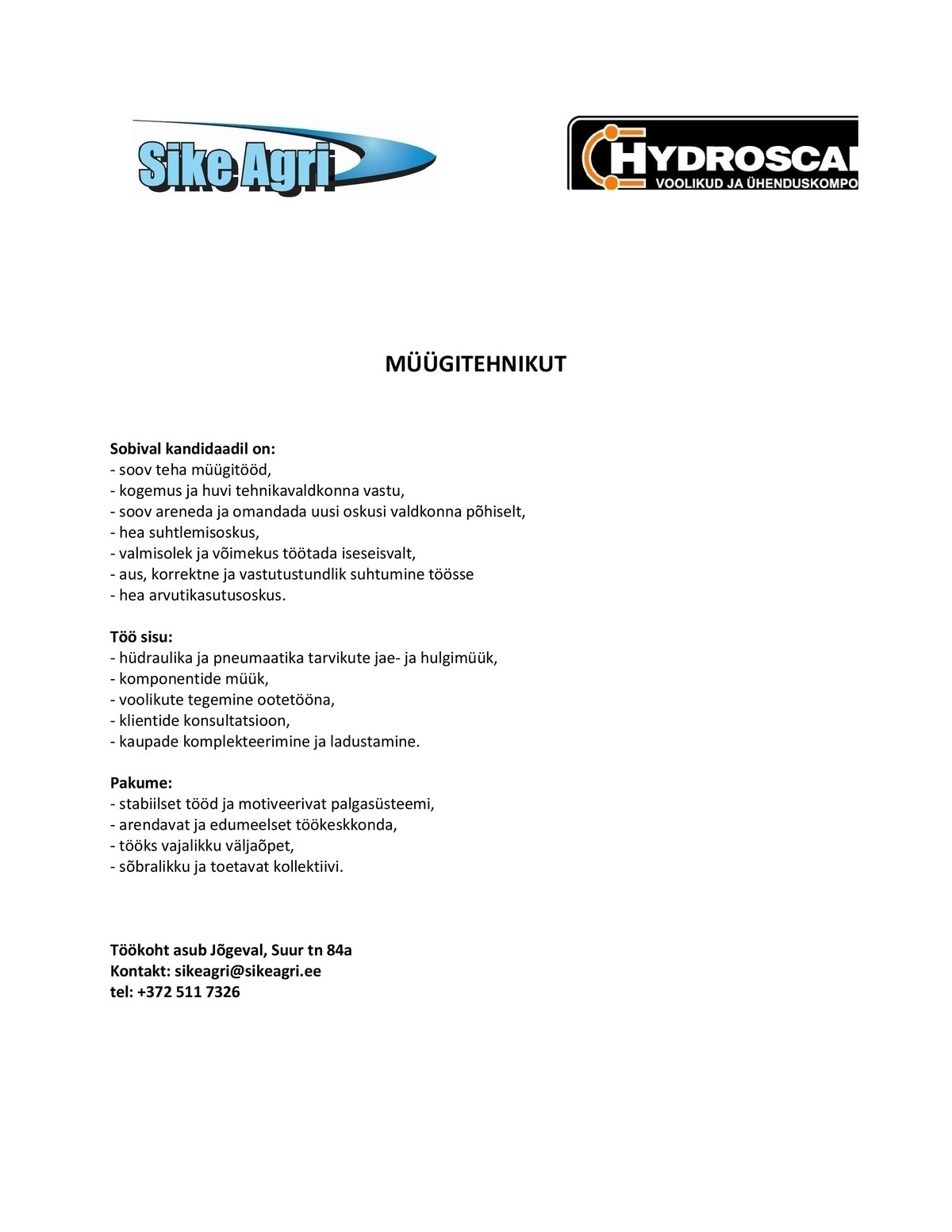 - kogemus ja huvi tehnikavaldkonna vastu,