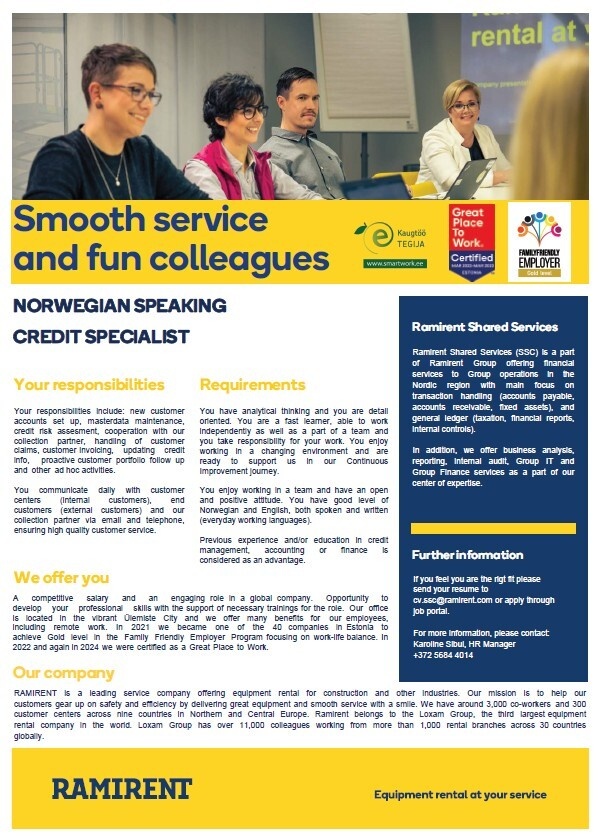 Previous experience and/or education in credit management, accounting or finance is considered as an advantage.