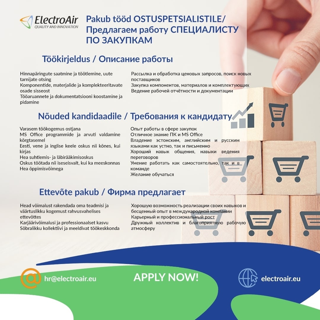 - Владение эстонским, английским и русским языками как устно, так и письменно