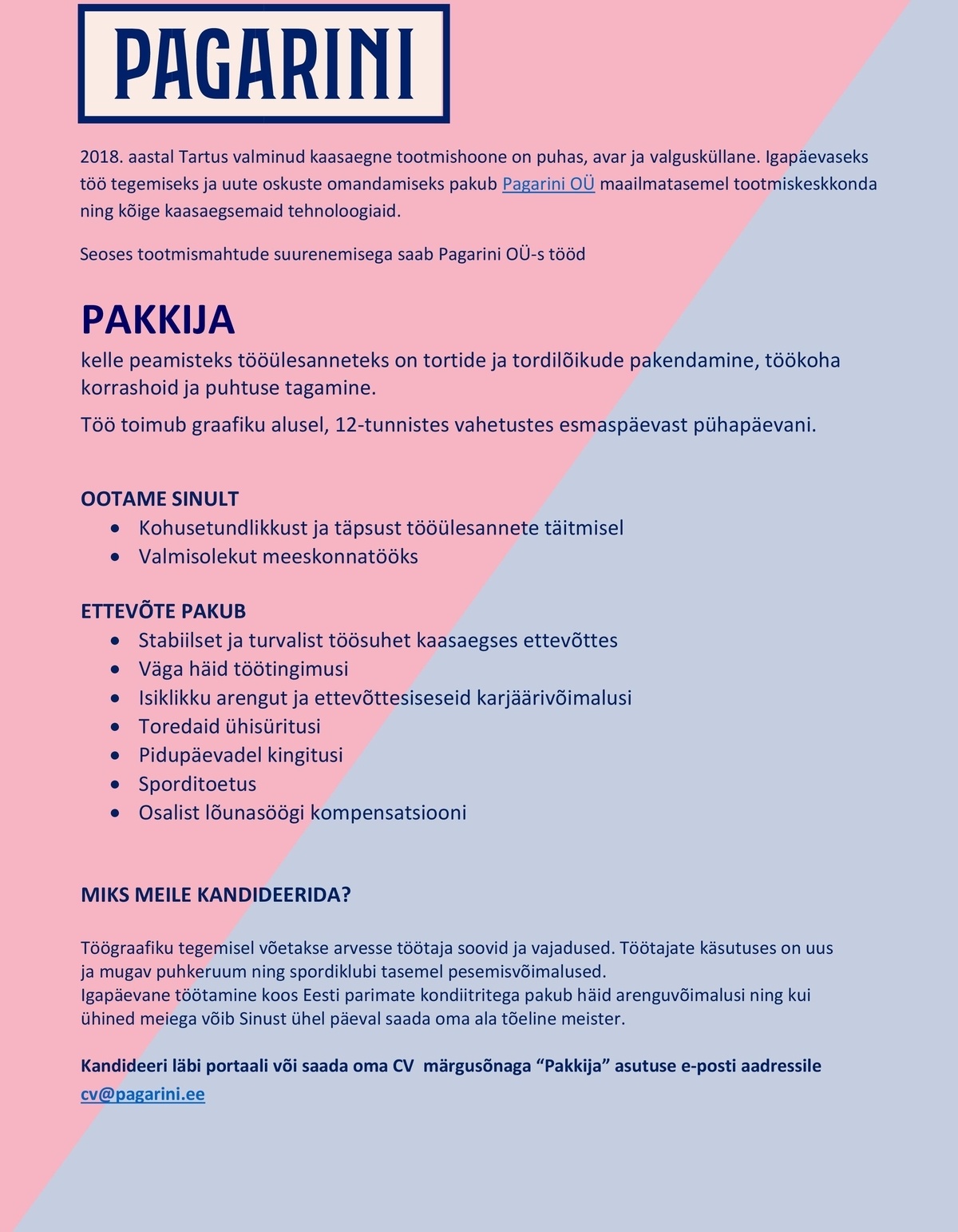 Väga häid töötingimusi ja konkurentsivõimelist töötasu
