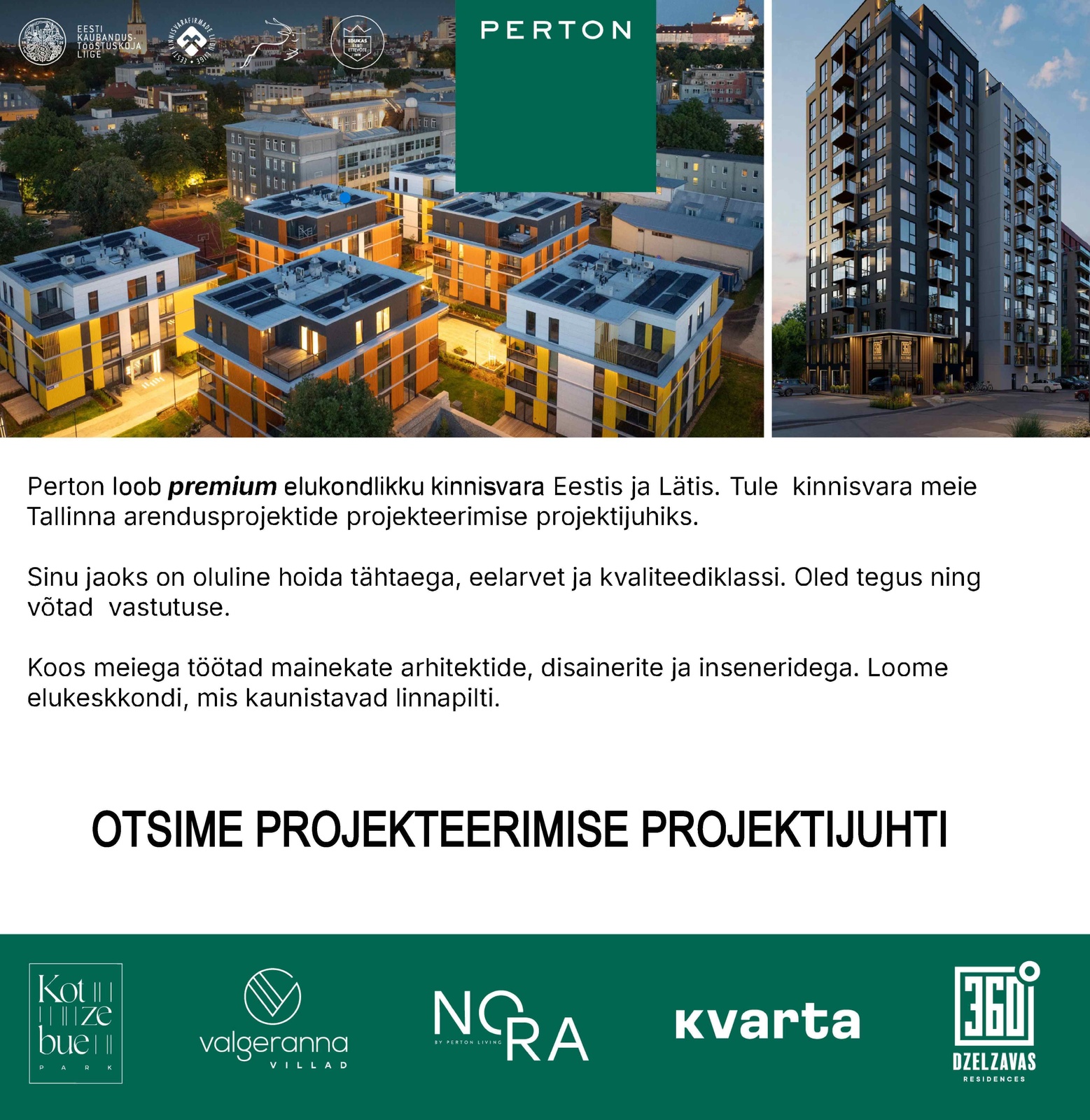Perton on kahekümneaastase kogemusega peamiselt eksklusiivsema premium elukondliku kinnisvara arendamisega tegelev ettevõte. Ettevõtte koduturgudeks on hetkel lisaks Eestile ka Läti. Viimased suuremad kinnisvaraarendused: Kotzebue Park – www.kotzebuepark.ee; Dzelzavas Residence koos Hepsoriga - www.dzresidence.lv; Ehitajate tee 105 - NoRa by Perton Living jt. Loe lähemalt ettevõtte tegemiste/projektide kohta www.perton.ee. Pertoni arendusportfelli suuruseks on hetkel üle 600 korteri.