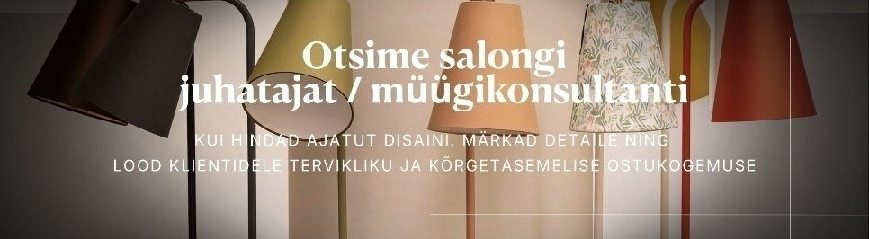 Sa nõustad kliente valgustite ja mööbli valikul, aidates leida lahendusi, mis päriselt toimivad nende ruumis. Samal ajal kujundad ja arendad salongi väljapanekut, et see inspireeriks ja looks selgeid valikuid.
