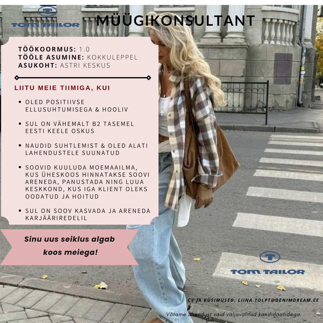 Kui Sul on positiivne ja lahendustele suunatud mõtteviis, eesti keele oskus vähemalt B2 ning vähemalt kesk- või kutseharidus, siis just Sind me otsimegi.