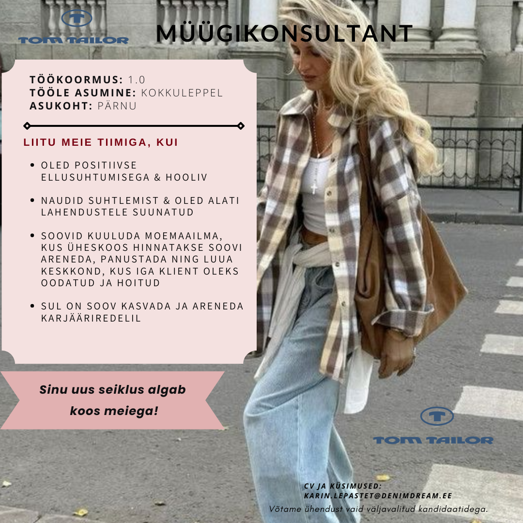 Kui jah, siis oled lahkelt oodatud liituma meie Denim Dreami perega. Meiega oled hoitud! Meiega koos on lahe!Meil on Sulle palju anda, kui sa oled valmis vastu võtma! ♡
