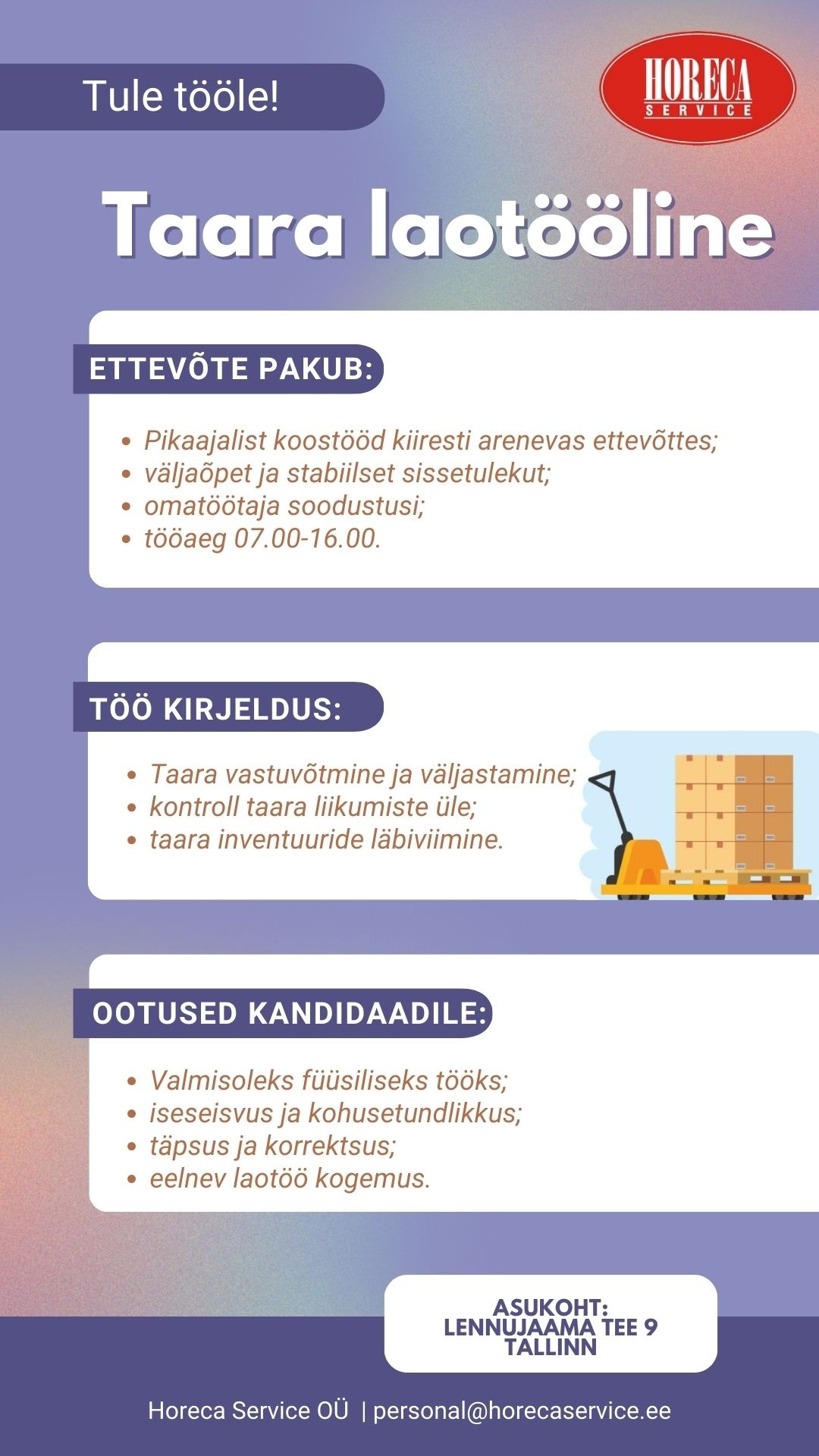 Palun sisesta siia oma küsimus. Küsimus ilmub tööpakkumisel nähtavale kohe, kui tööpakkuja on sellele vastanud. Sinu e-maili aadress jääb seejuures tööpakkumise vaatajatele varjatuks.