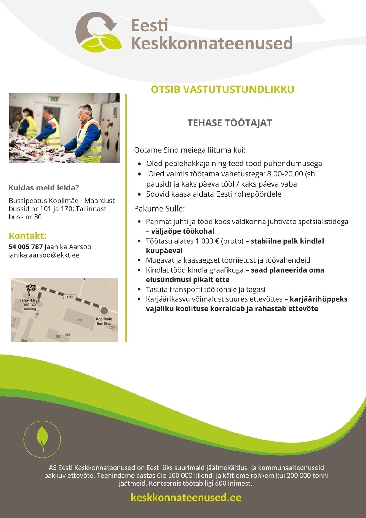 Töötasu alates 1 000 € (bruto) –stabiilne palk kindlal kuupäeval