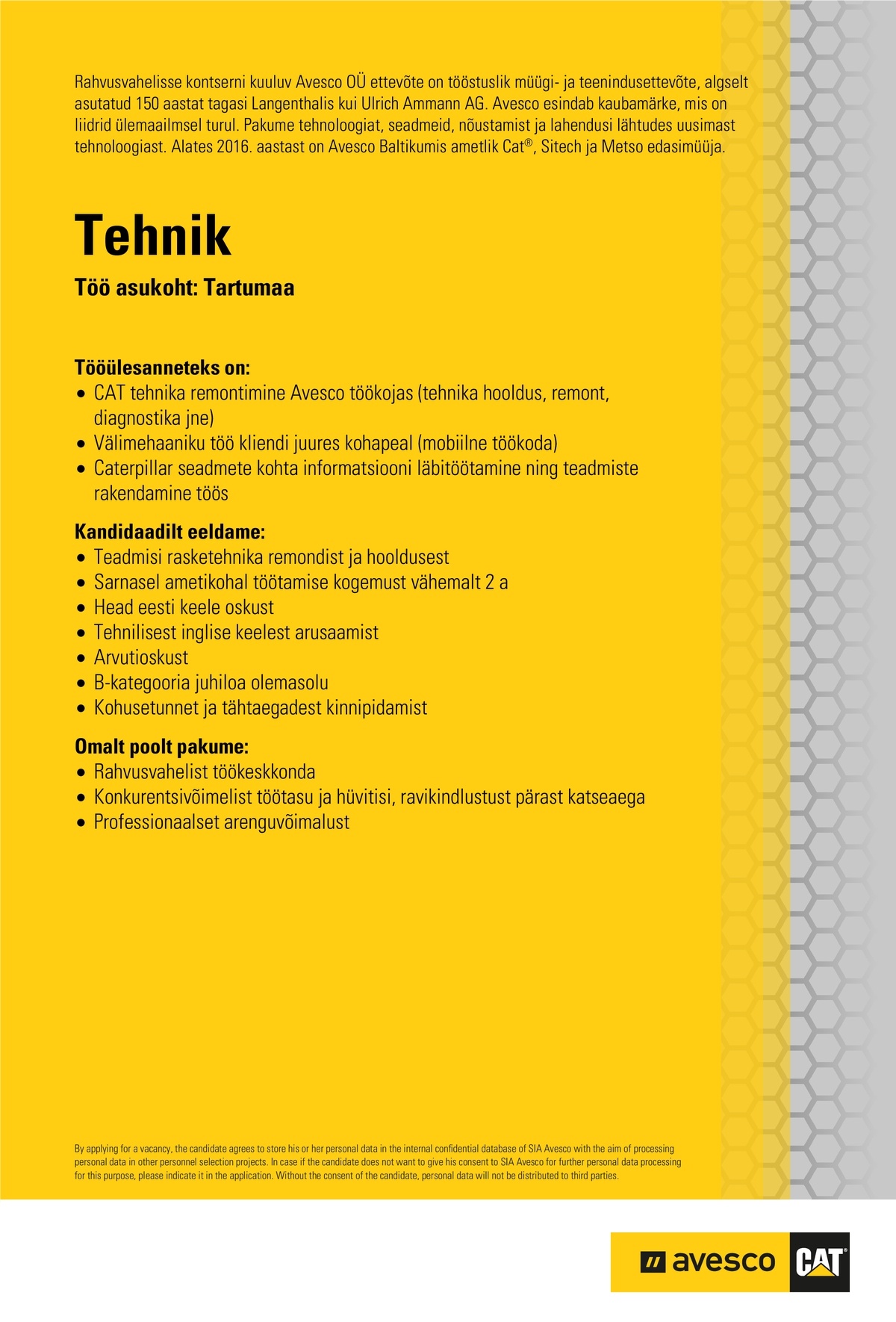 • Caterpillar seadmete kohta informatsiooni läbitöötamine ning teadmiste rakendamine töös