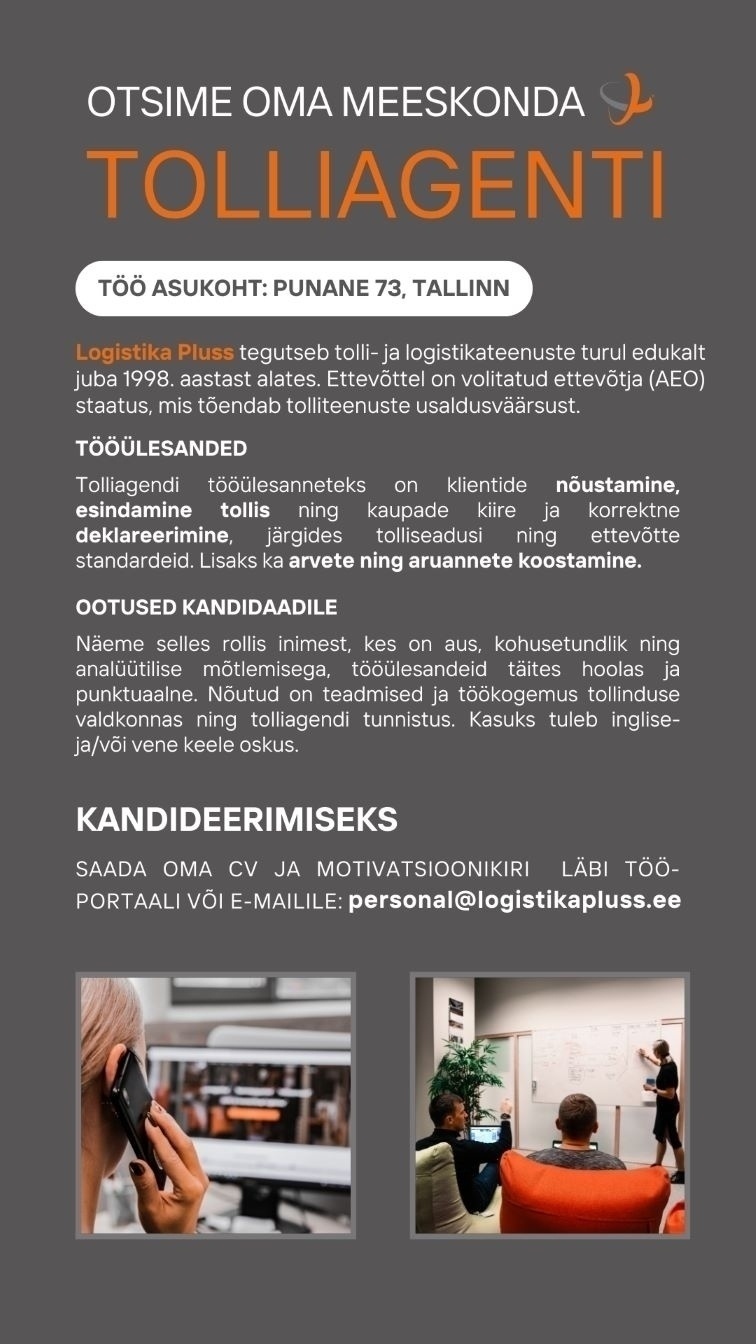 • Teadmised ja töökogemus tollinduse valdkonnas