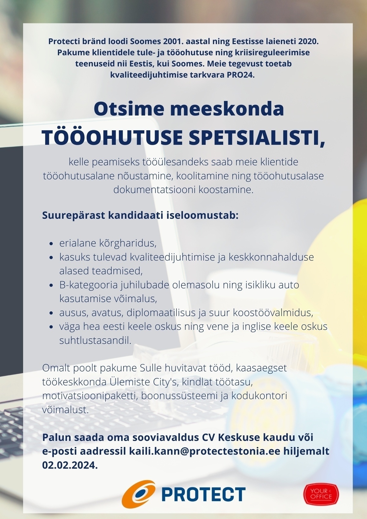 Tööohutuse spetsialisti peamiseks tööülesandeks on klientide tööohutusalane nõustamine, koolitamine ning tööohutusalase dokumentatsiooni koostamine.
